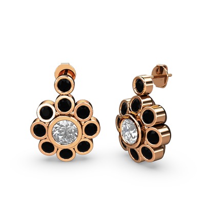 Siyah zirkon ve elmas 8 ayar rose altın küpe (1.08 karat)
