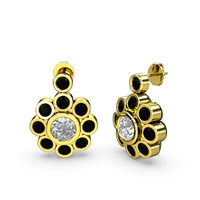 Siyah zirkon ve elmas 925 ayar altın kaplama gümüş küpe (1.08 karat)