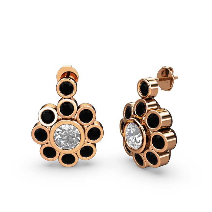 Siyah zirkon ve elmas 925 ayar rose altın kaplama gümüş küpe (1.08 karat)