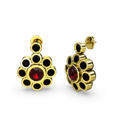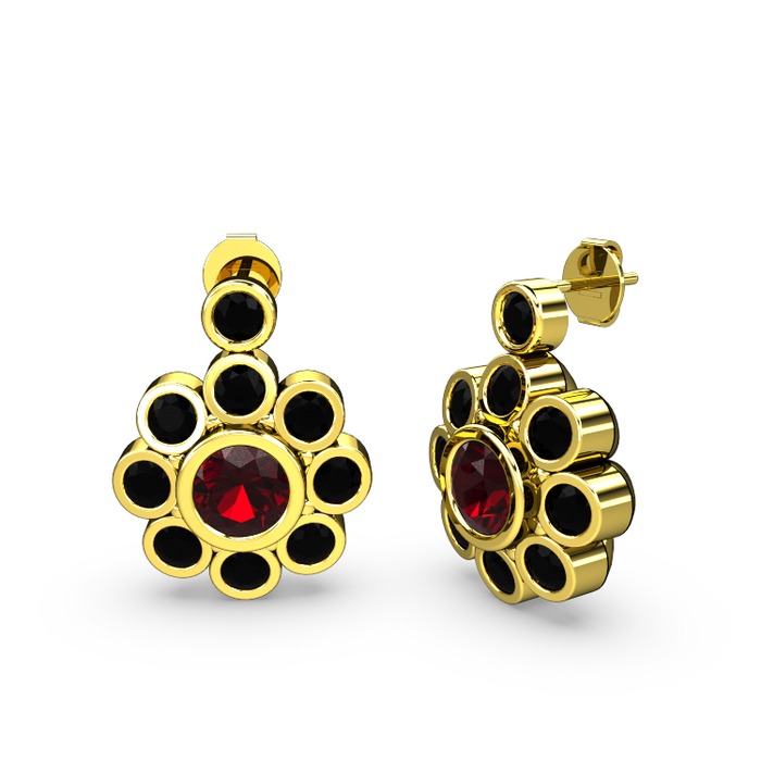 Siyah zirkon ve garnet 14 ayar altın küpe