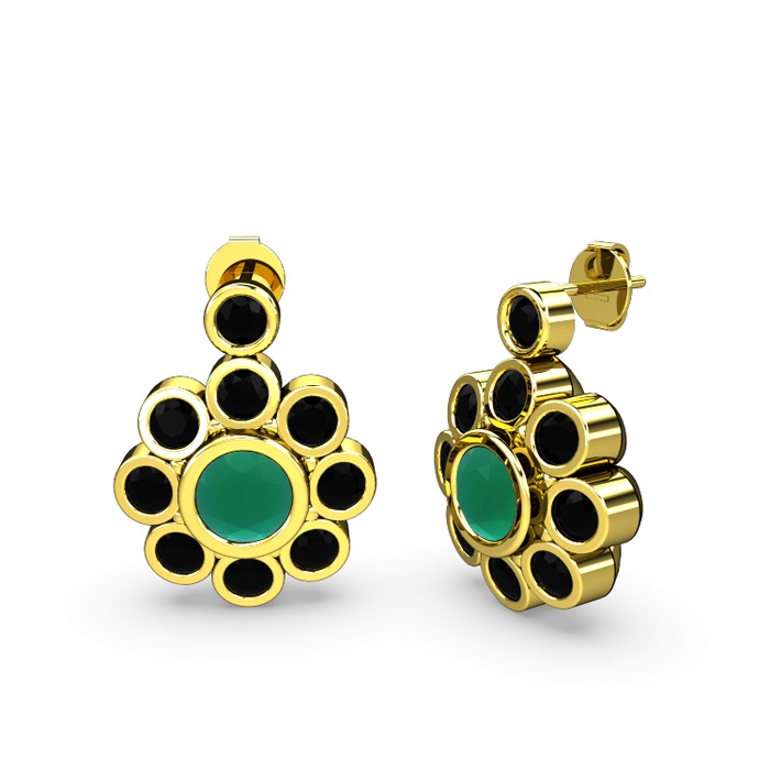 Siyah zirkon ve kök zümrüt 18 ayar altın küpe