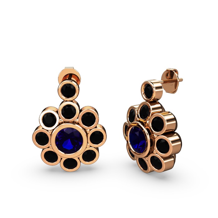 Siyah zirkon ve lab safir 18 ayar rose altın küpe