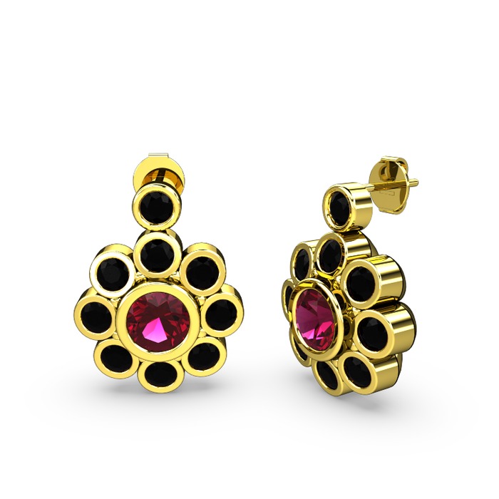 Siyah zirkon ve rodolit garnet 8 ayar altın küpe