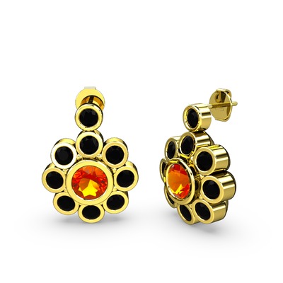 Siyah zirkon ve sitrin 925 ayar altın kaplama gümüş küpe
