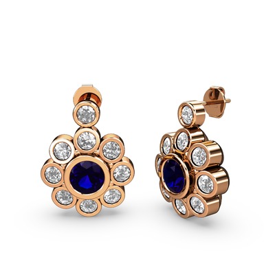 Swarovski ve lab safir 18 ayar rose altın küpe