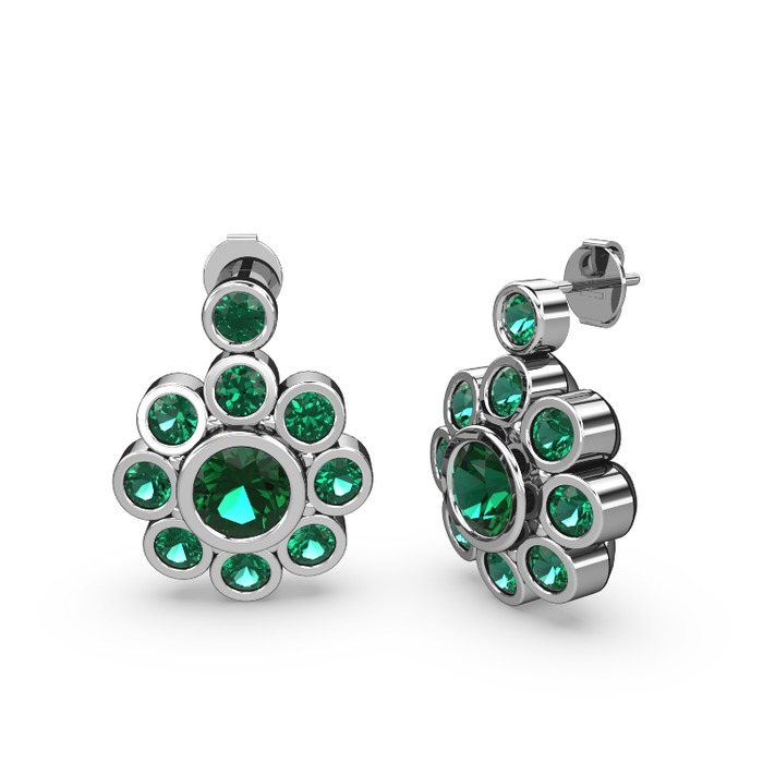 Yeşil kuvars 18 ayar beyaz altın küpe