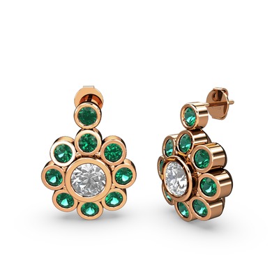 Yeşil kuvars ve elmas 14 ayar rose altın küpe (1.08 karat)
