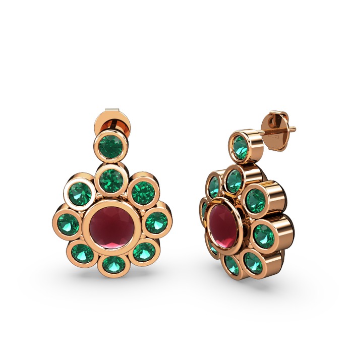 Yeşil kuvars ve kök yakut 8 ayar rose altın küpe