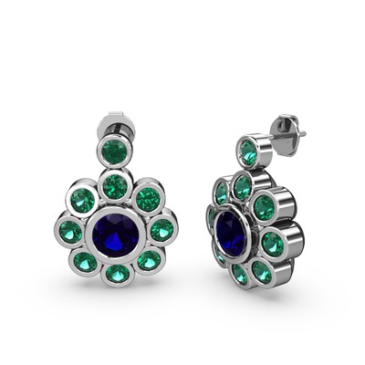 Yeşil kuvars ve lab safir 8 ayar beyaz altın küpe