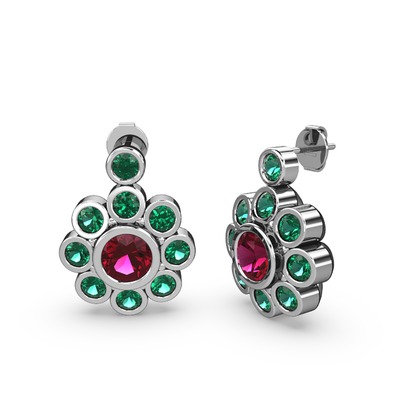 Yeşil kuvars ve rodolit garnet 18 ayar beyaz altın küpe
