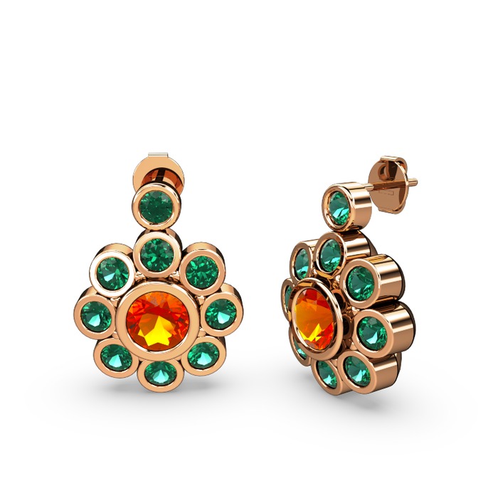 Yeşil kuvars ve sitrin 925 ayar rose altın kaplama gümüş küpe