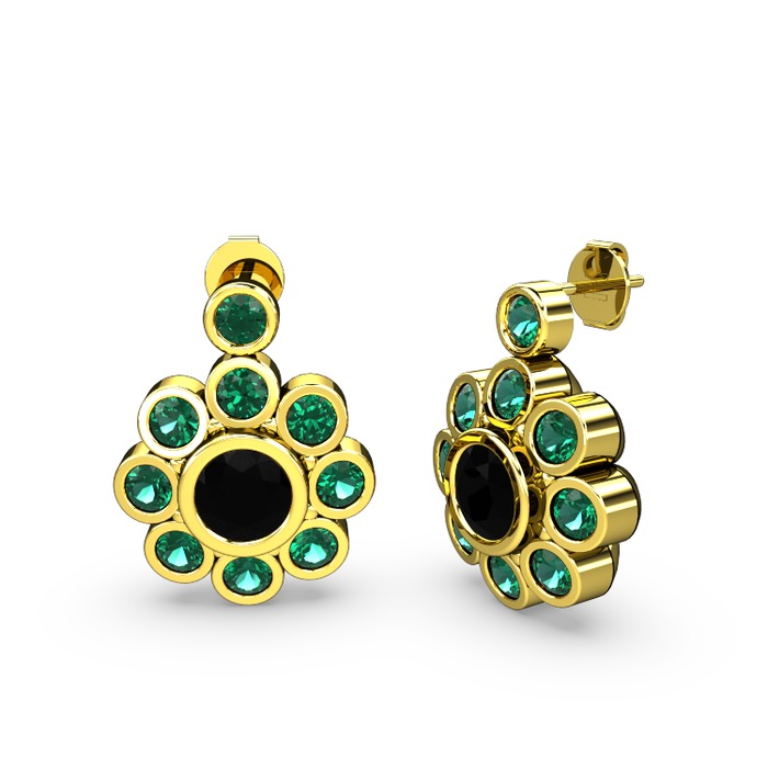 Yeşil kuvars ve siyah zirkon 18 ayar altın küpe