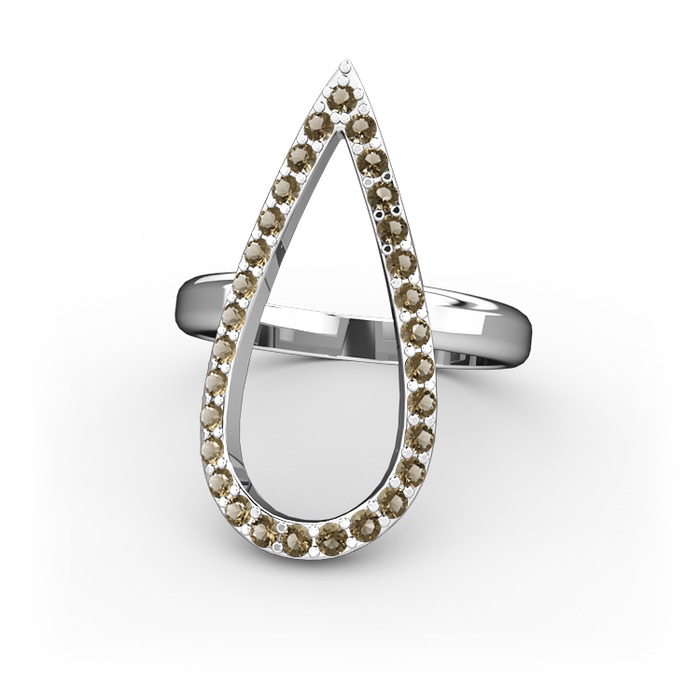 Dumanlı kuvars 8 ayar beyaz altın yüzük
