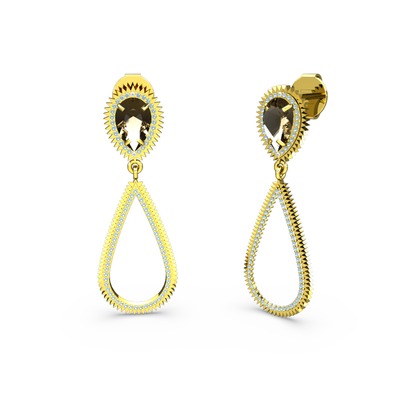 Akuamarin ve dumanlı kuvars 14 ayar altın küpe
