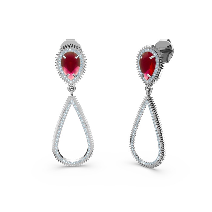 Akuamarin ve kök yakut 18 ayar beyaz altın küpe