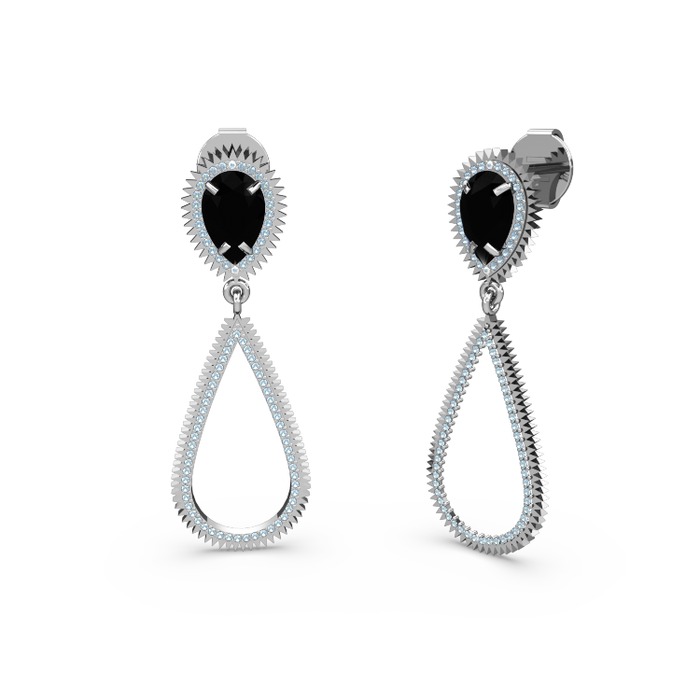 Akuamarin ve siyah zirkon 925 ayar gümüş küpe