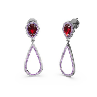 Ametist ve garnet 925 ayar gümüş küpe