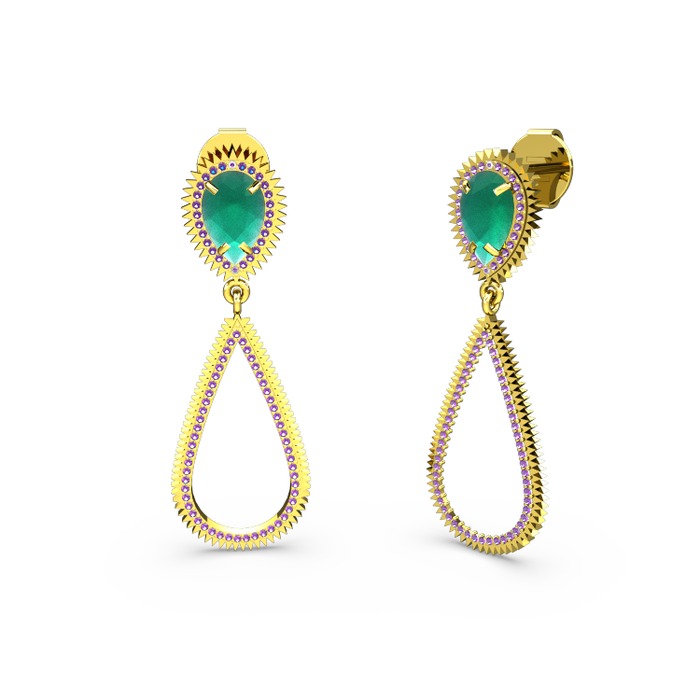 Ametist ve kök zümrüt 925 ayar altın kaplama gümüş küpe