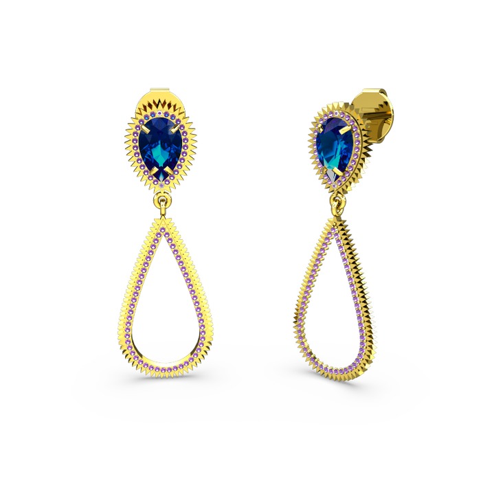 Ametist ve lab safir 925 ayar altın kaplama gümüş küpe