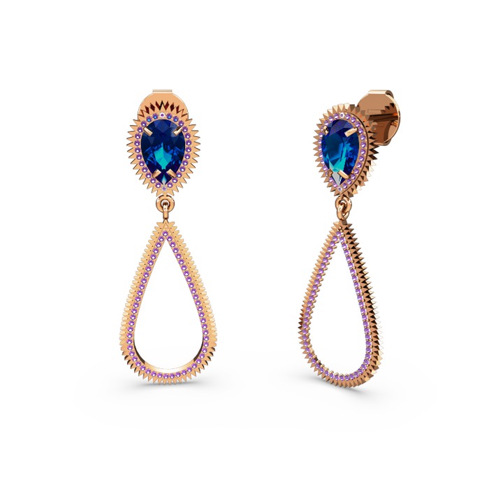 Ametist ve lab safir 925 ayar rose altın kaplama gümüş küpe