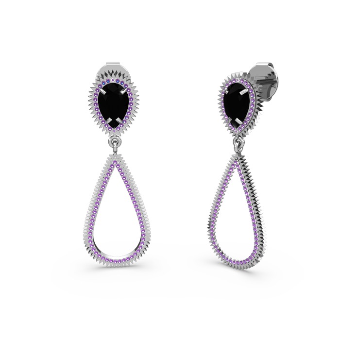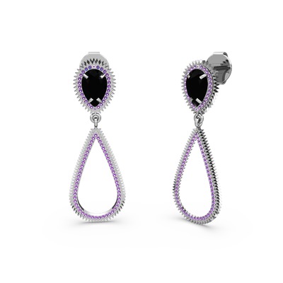 Ametist ve siyah zirkon 18 ayar beyaz altın küpe