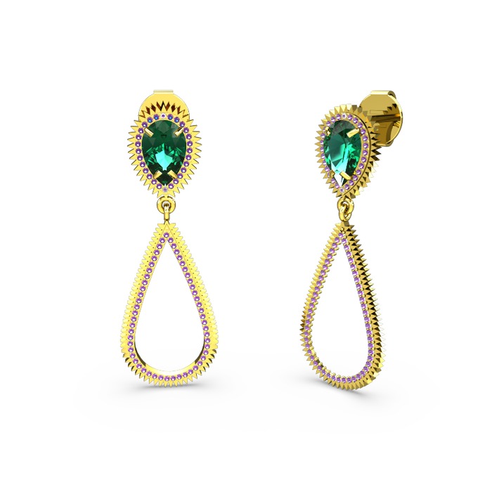 Ametist ve yeşil kuvars 14 ayar altın küpe