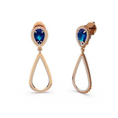 Beyaz zirkon ve lab safir 18 ayar rose altın küpe