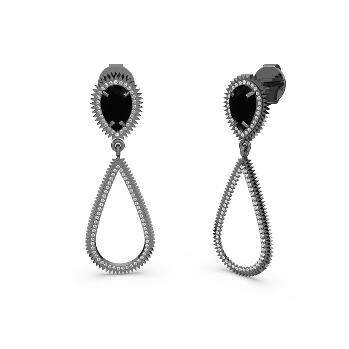 Beyaz zirkon ve siyah zirkon 925 ayar siyah rodyum kaplama gümüş küpe