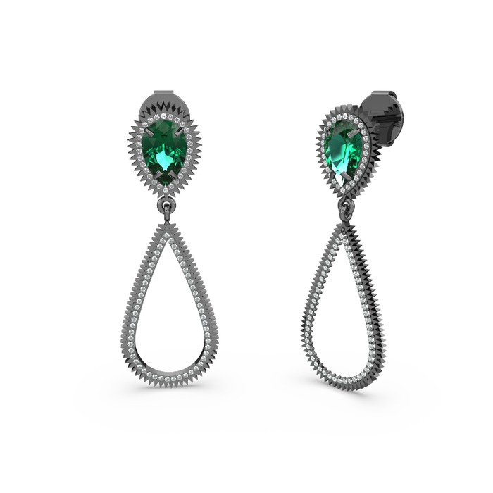 Beyaz zirkon ve yeşil kuvars 925 ayar siyah rodyum kaplama gümüş küpe