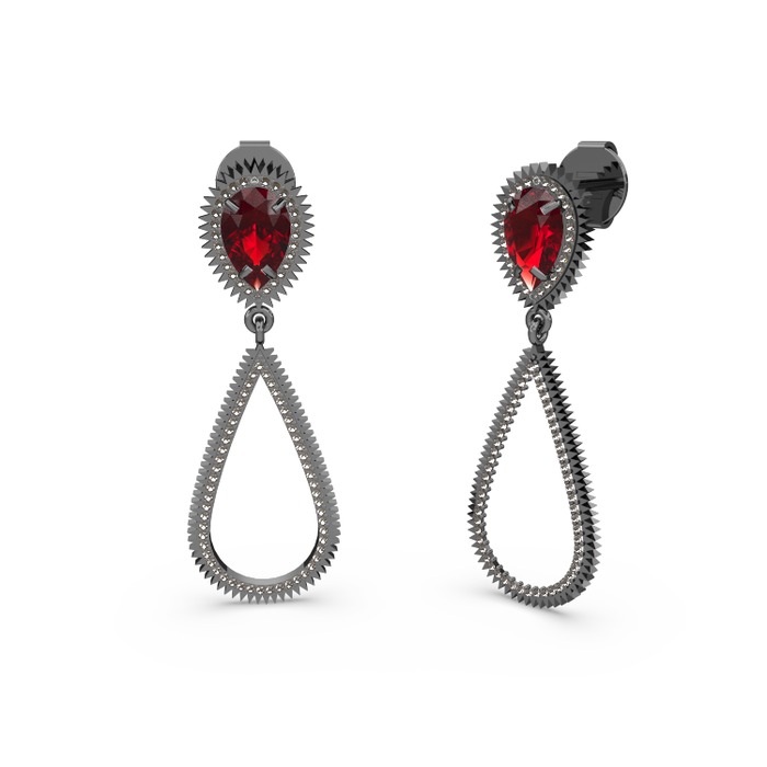 Dumanlı kuvars ve garnet 925 ayar siyah rodyum kaplama gümüş küpe
