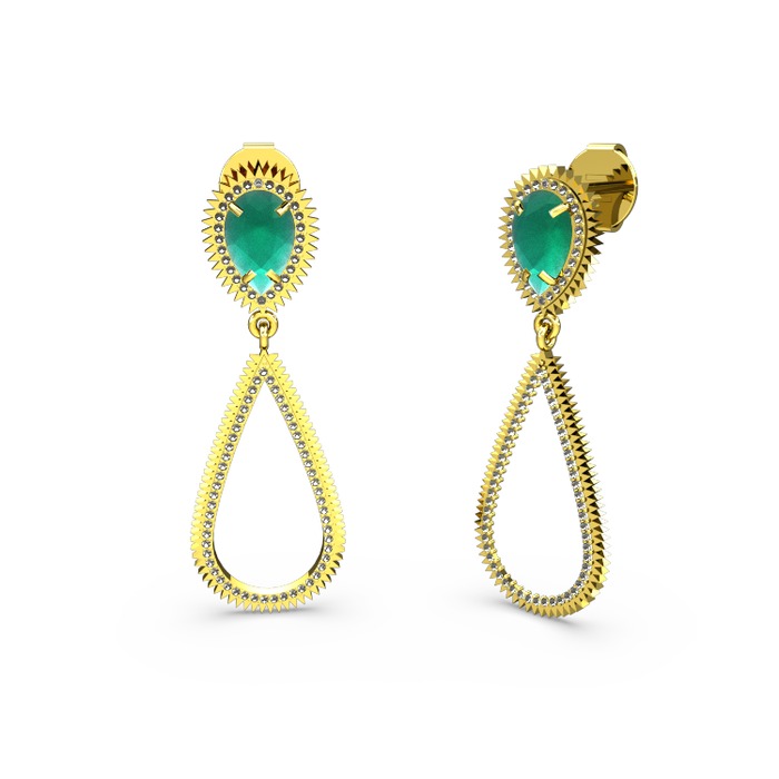Dumanlı kuvars ve kök zümrüt 925 ayar altın kaplama gümüş küpe