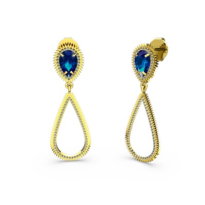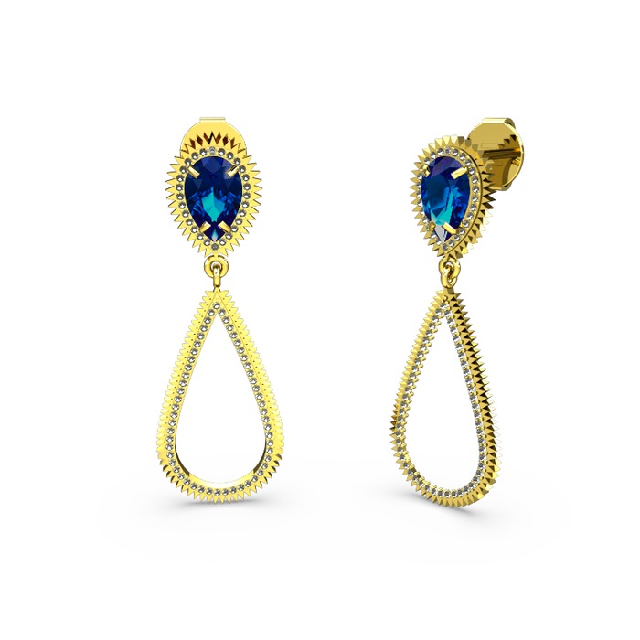 Dumanlı kuvars ve lab safir 14 ayar altın küpe