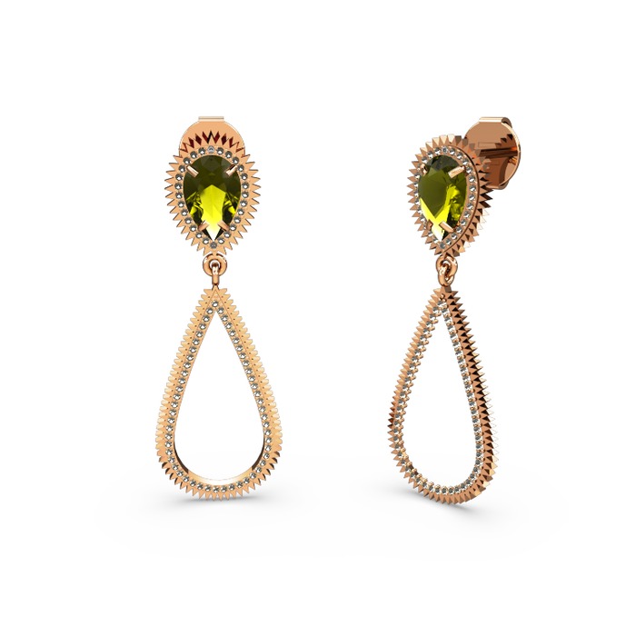 Dumanlı kuvars ve peridot 925 ayar rose altın kaplama gümüş küpe