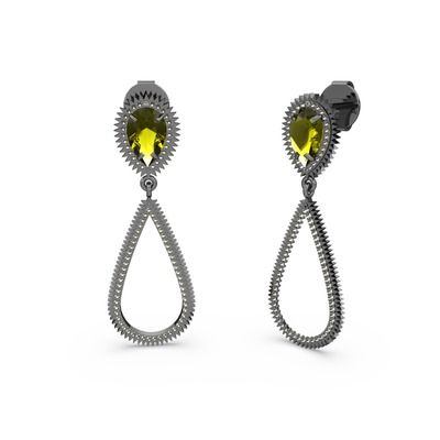 Dumanlı kuvars ve peridot 925 ayar siyah rodyum kaplama gümüş küpe