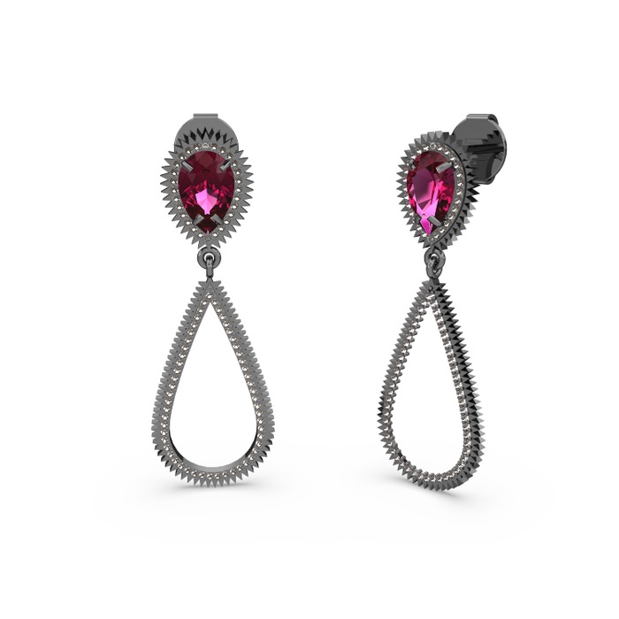 Dumanlı kuvars ve rodolit garnet 925 ayar siyah rodyum kaplama gümüş küpe