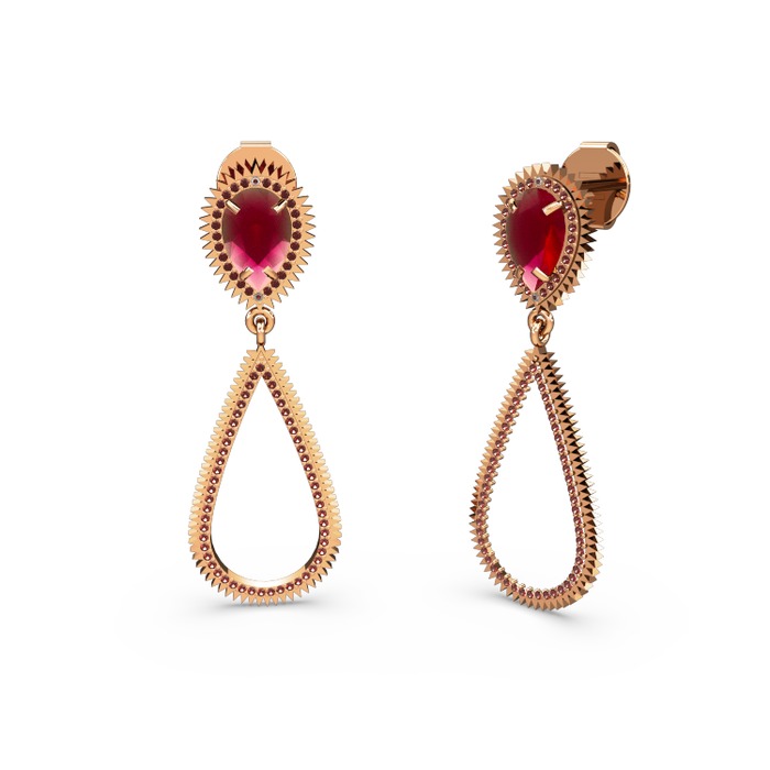 Garnet ve kök yakut 925 ayar rose altın kaplama gümüş küpe