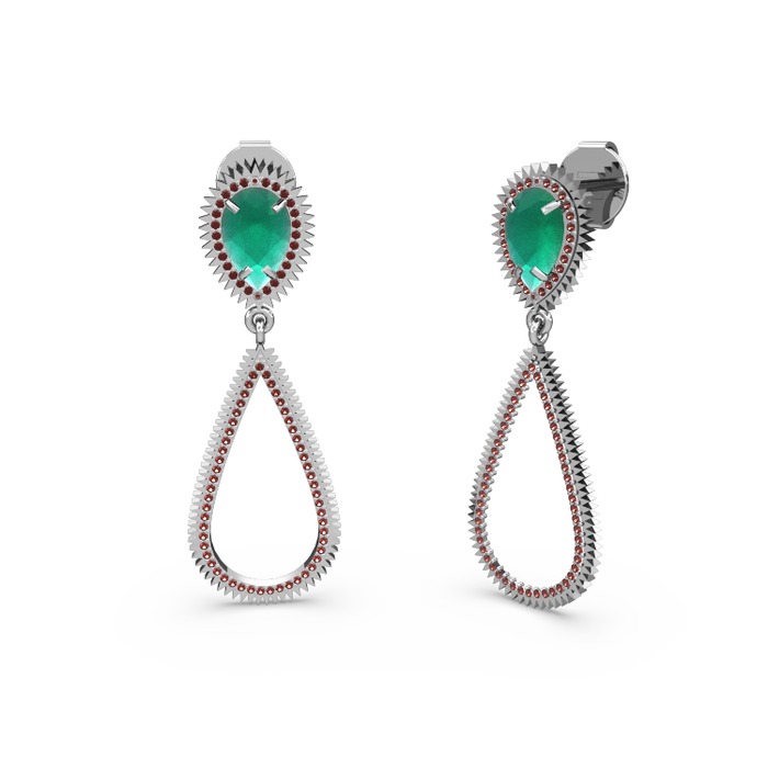 Garnet ve kök zümrüt 14 ayar beyaz altın küpe