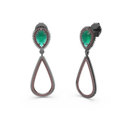 Garnet ve kök zümrüt 925 ayar siyah rodyum kaplama gümüş küpe