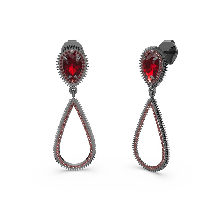 Garnet 925 ayar siyah rodyum kaplama gümüş küpe