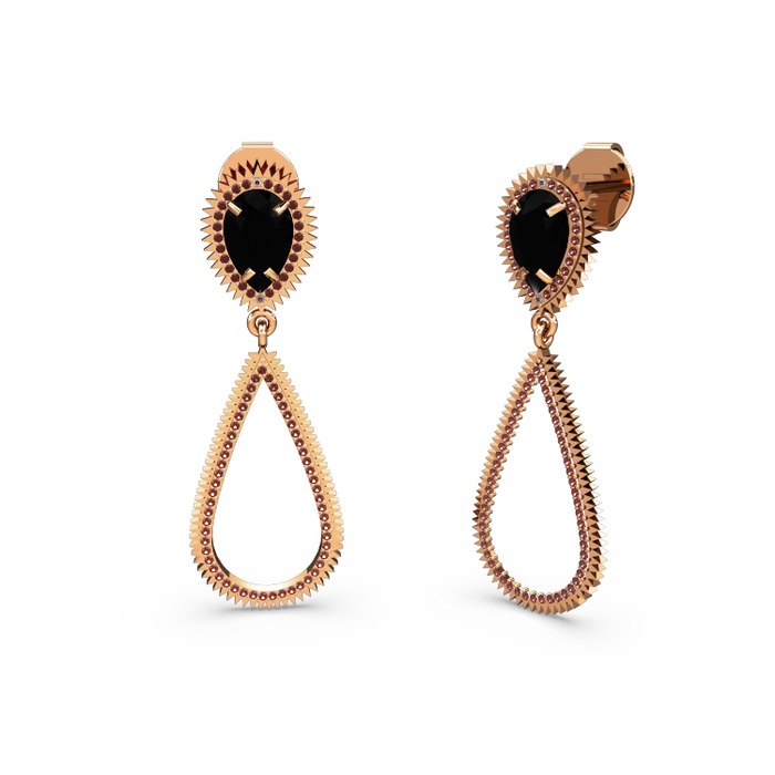 Garnet ve siyah zirkon 925 ayar rose altın kaplama gümüş küpe