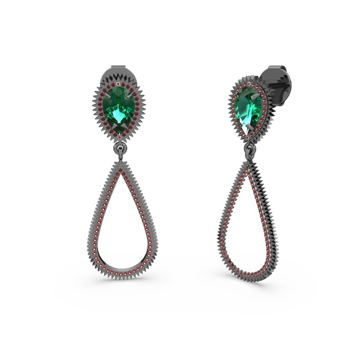Garnet ve yeşil kuvars 925 ayar siyah rodyum kaplama gümüş küpe