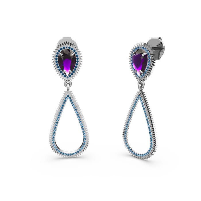 Lab safir ve ametist 14 ayar beyaz altın küpe