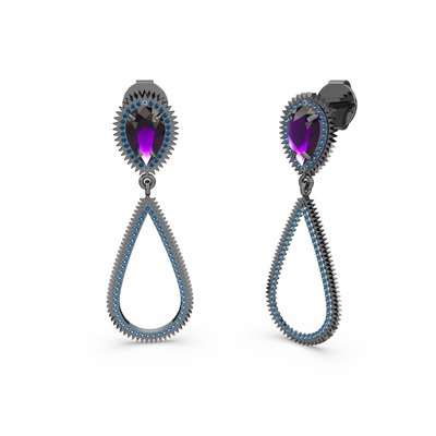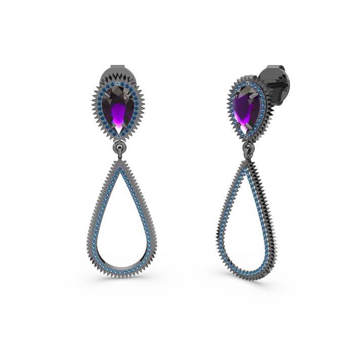 Lab safir ve ametist 925 ayar siyah rodyum kaplama gümüş küpe