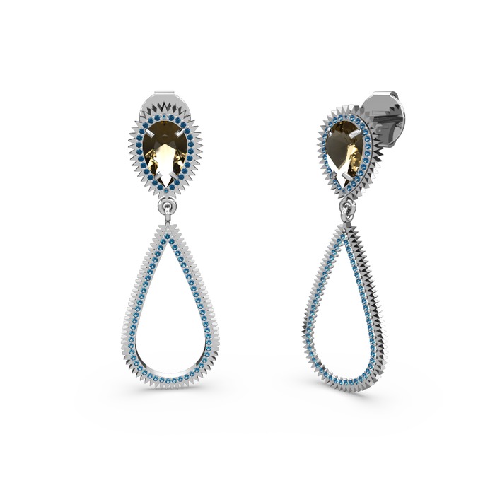 Lab safir ve dumanlı kuvars 18 ayar beyaz altın küpe