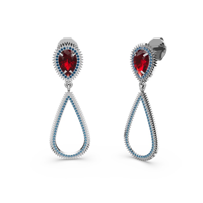 Lab safir ve garnet 8 ayar beyaz altın küpe