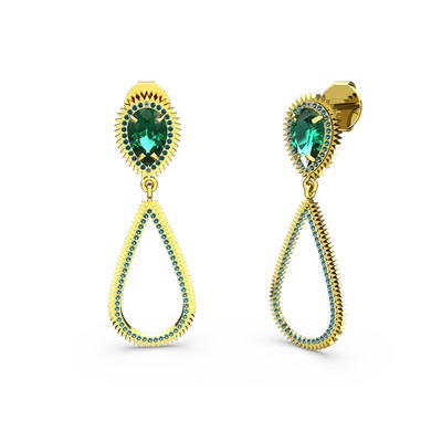 Lab safir ve yeşil kuvars 925 ayar altın kaplama gümüş küpe