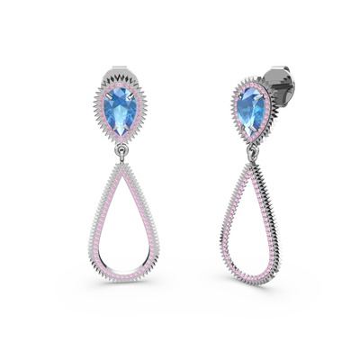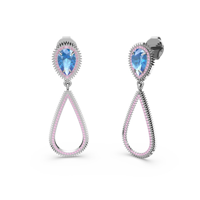Pembe kuvars ve akuamarin 8 ayar beyaz altın küpe