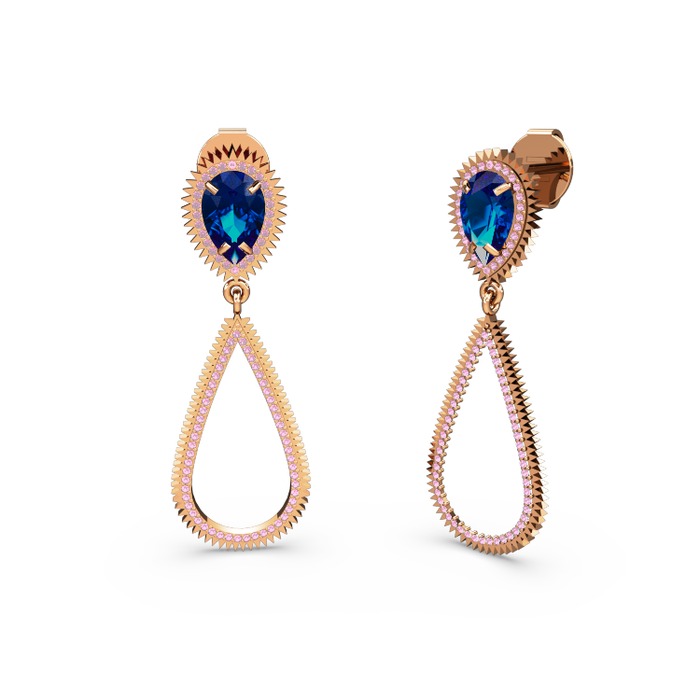 Pembe kuvars ve lab safir 8 ayar rose altın küpe