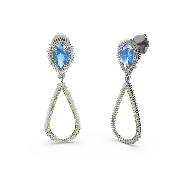 Peridot ve akuamarin 18 ayar beyaz altın küpe