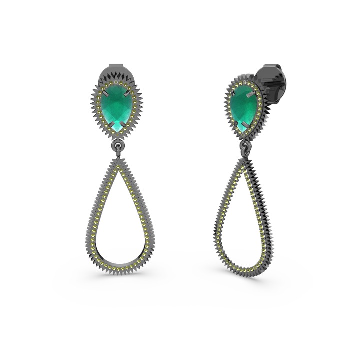 Peridot ve kök zümrüt 925 ayar siyah rodyum kaplama gümüş küpe